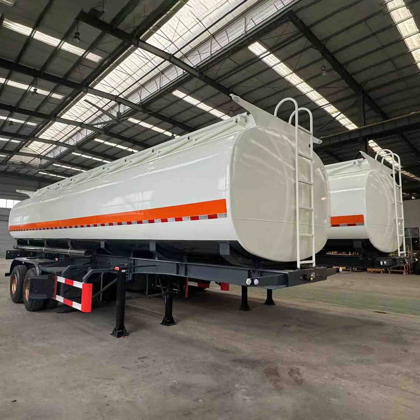 Tanque de combustível semi-reboque com suspensão de bogie com corpo aerodinâmico: o corpo é feito de liga de alta resistência, soldado de precisão e anticorrosão tratada para garantir a durabilidade e a resistência à corrosão para uso a longo prazo. O projeto simplificado ajuda a reduzir a resistência ao ar e a diminuir o consumo de combustível.