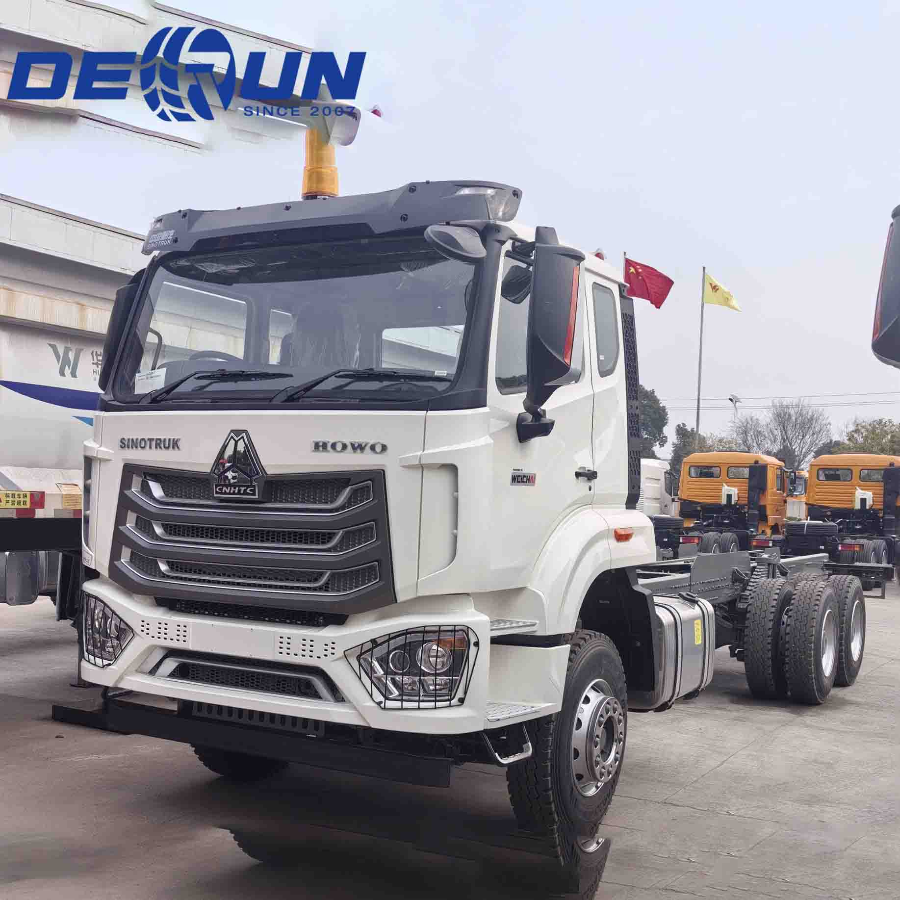 O chassi Howo NX atinge a manobrabilidade significativamente melhorada em canteiros de obras lamacentos e jardas estreitas através de uma distância entre eixos curta (aproximadamente 3,4 metros + 1,4 metros); O grande tanque de combustível reduz a frequência de reabastecimento em áreas remotas, enquanto o sistema de resfriamento aprimorado e o revestimento anticorrosão garantem capacidade operacional para qualquer clima em regiões tropicais e chuvosas. Os recursos básicos de segurança incluem um sistema de frenagem antibloqueio ABS, com uma trava diferencial mecânica opcional para aumentar a estabilidade em superfícies escorregadias e suporte total para os requisitos de personalização de acionamento à direita no sudeste da Ásia, África e outras regiões.