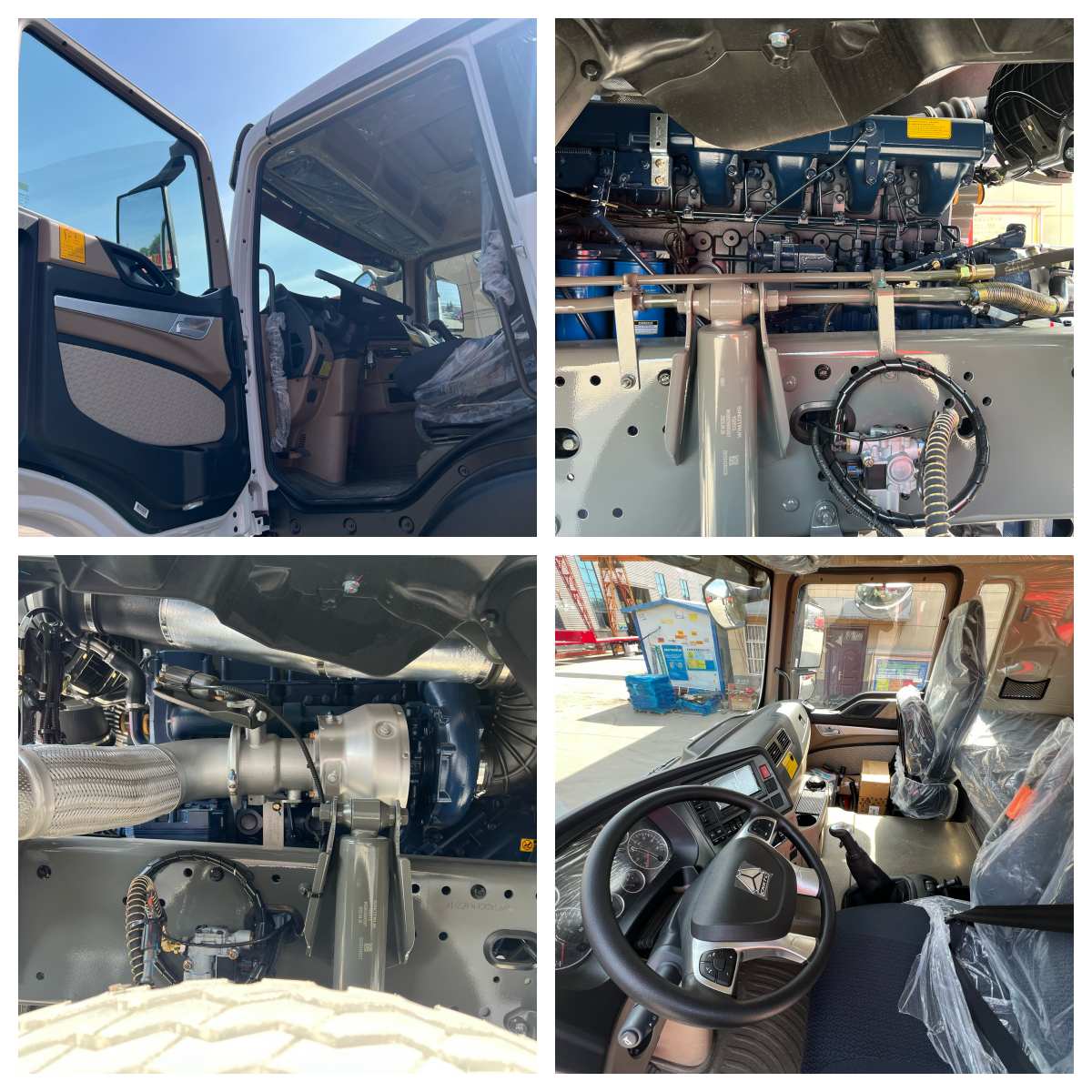 O caminhão de trator Sinotruk Howo TX 6x4 está equipado com o motor Weichai WP12.460E62, intercooler em linha de seis cilindros, refrigerado a água, com um deslocamento de 338kW (460HP), que é poderoso. É combinado com a transmissão manual de 12 velocidades da série HW do caminhão nacional de fortes nacionais da China, que tem alta eficiência de transmissão e mudança de engrenagem suave. Os eixos dianteiros e traseiros e o sistema de frenagem adotam tecnologia avançada internacional para garantir a segurança da direção. O táxi está equipado com quatro assentos de suspensão de airbags, exibição de LCD e ar condicionado de resfriamento e outros recursos confortáveis, proporcionando um bom ambiente de trabalho para motoristas e passageiros.